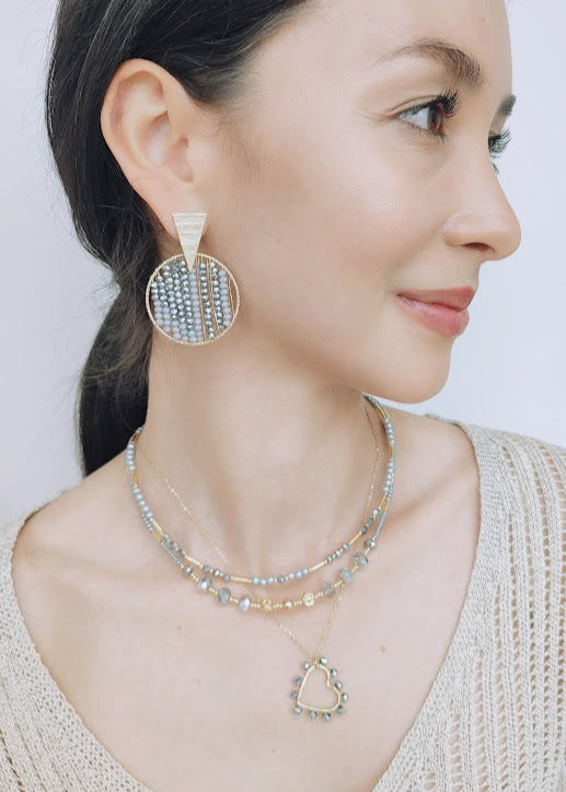 Arete decorado en técnica alambrismo con aro diamantado.