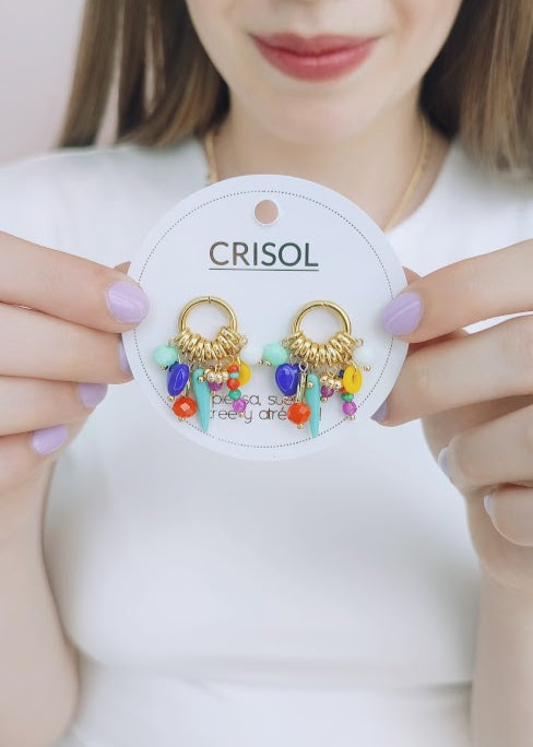 Arete decorado en diferentes piedras tales como: