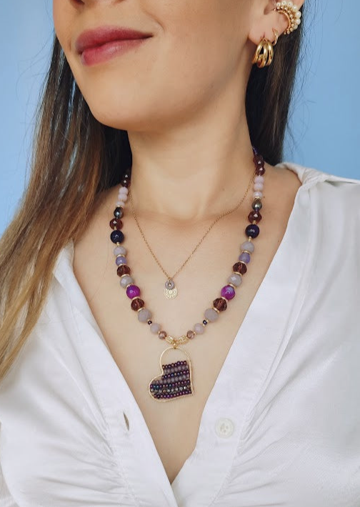 Corazón en baño dorado, decorado en técnica alambrismo.