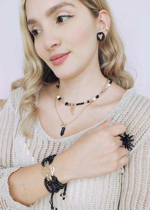 Cadena acero con dije en cuarzo lluvia de plata y dijes en oro gold filled brasilero.