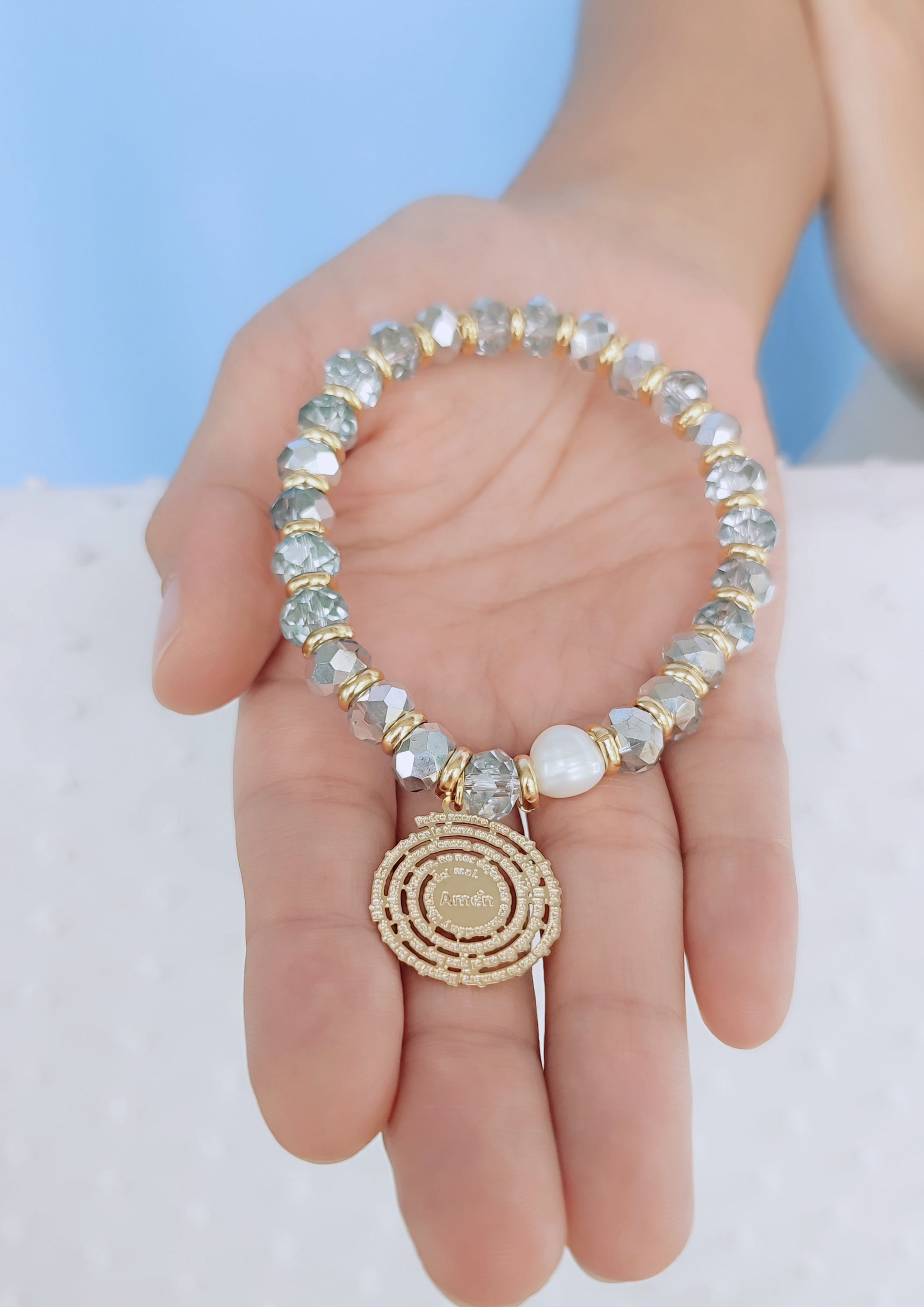 Ensartada en hilo caucho.