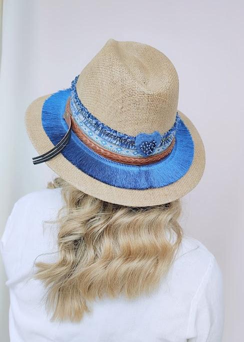 Sombrero elaborado en yute prensado.