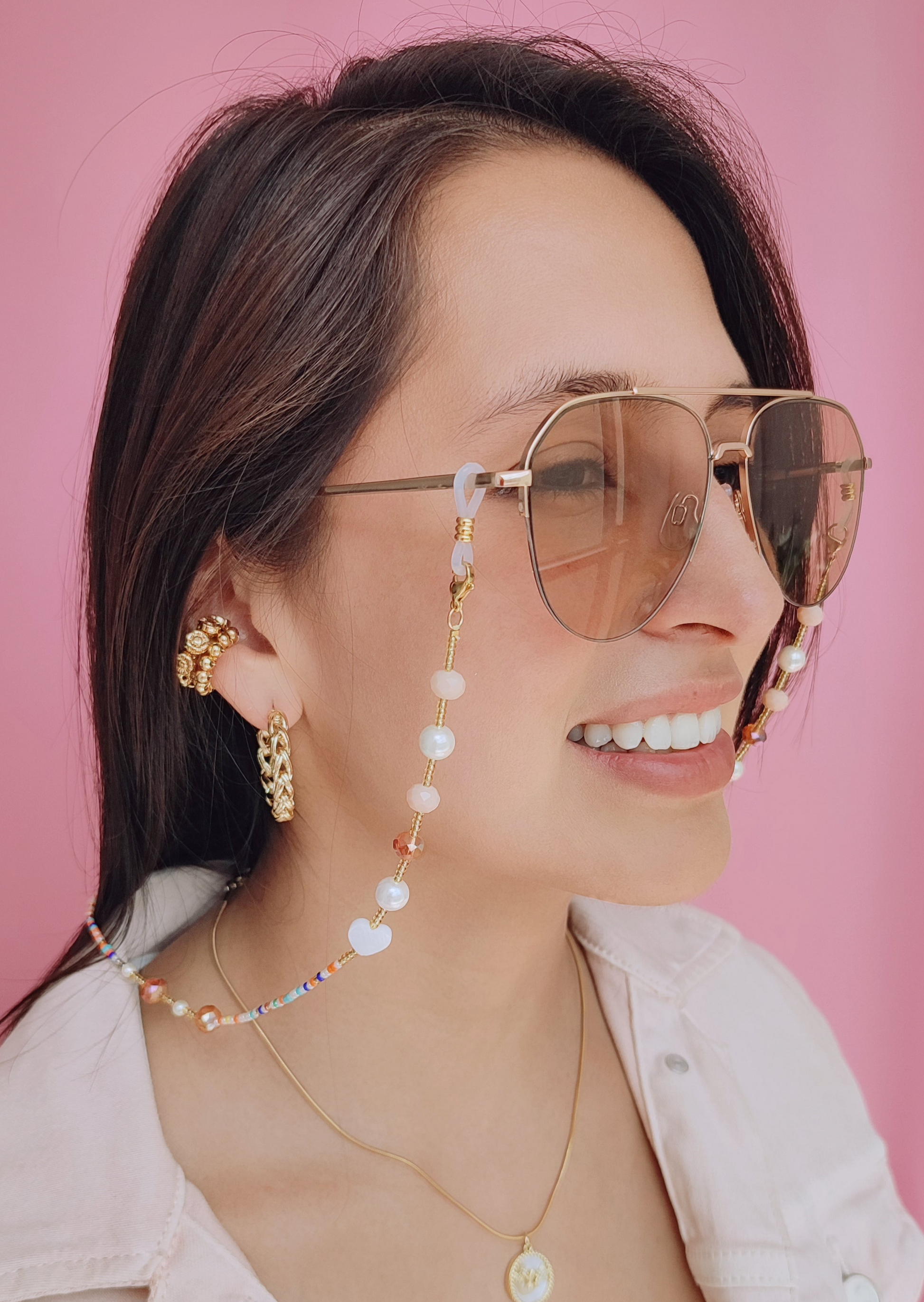 Cauchos con herrajes en baño dorado para portar las gafas.